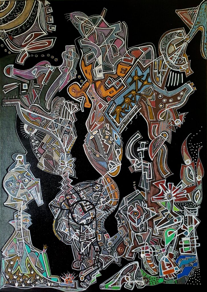 El gesto pictórico de Valkarze, afinado con la tierra y sus pulsaciones, funde lo ancestral con lo imaginado en un proceso espontáneo, casi ceremonial. Piroklástika también alude a la diversidad de lenguajes plásticos que conforman la propuesta: manifestaciones que invitan a ser contempladas con calma, para permitir que emerja el onirismo que atraviesa cada obra.